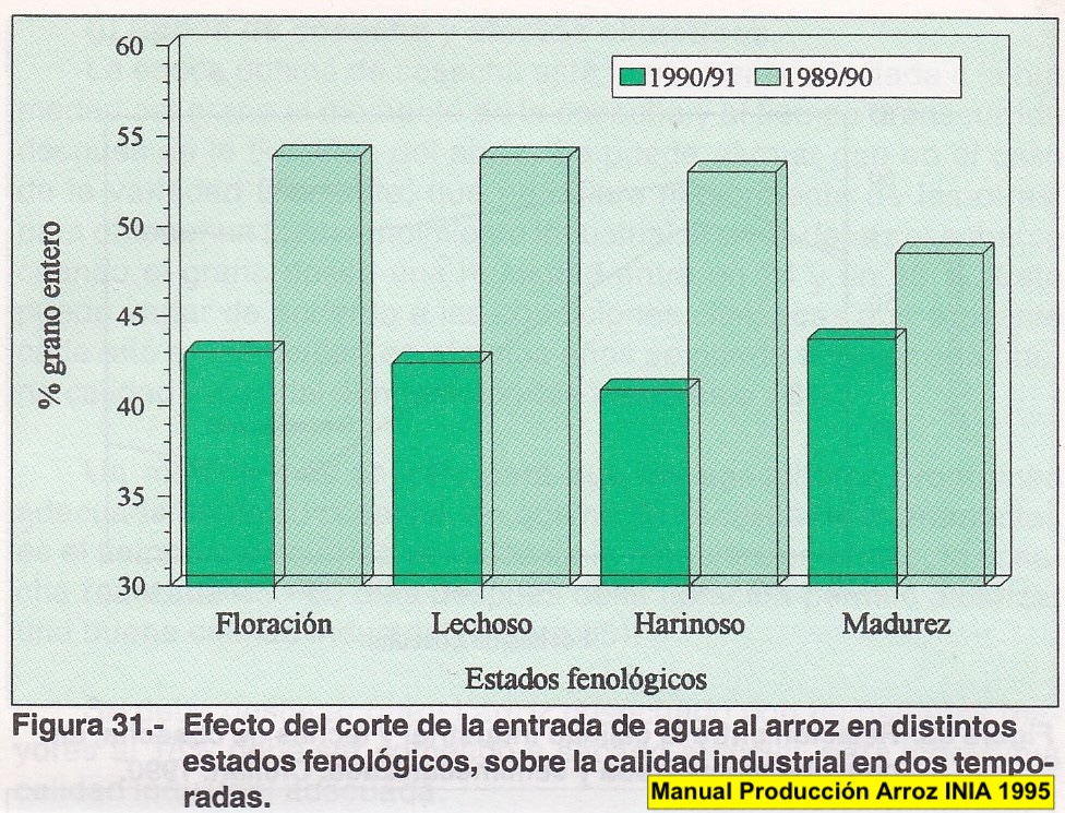 Sin embargo, modificar la fecha del corte del agua, era un tema que atentaba contra la tradición del cultivo. Adicionalmente, no existían estudios técnicos al respecto en nuestro país. En términos referenciales, era viable cortar el agua al cultivo al menos un mes antes de lo acostumbrado, evitando el desagüe de las superficies inundadas previo a la cosecha (“calar”). Este inadecuado manejo representaba botar o desperdiciar más de 30.000.000 de m3 al año. (en esa época unas 12.000 has con 0,25 m de lámina de agua).